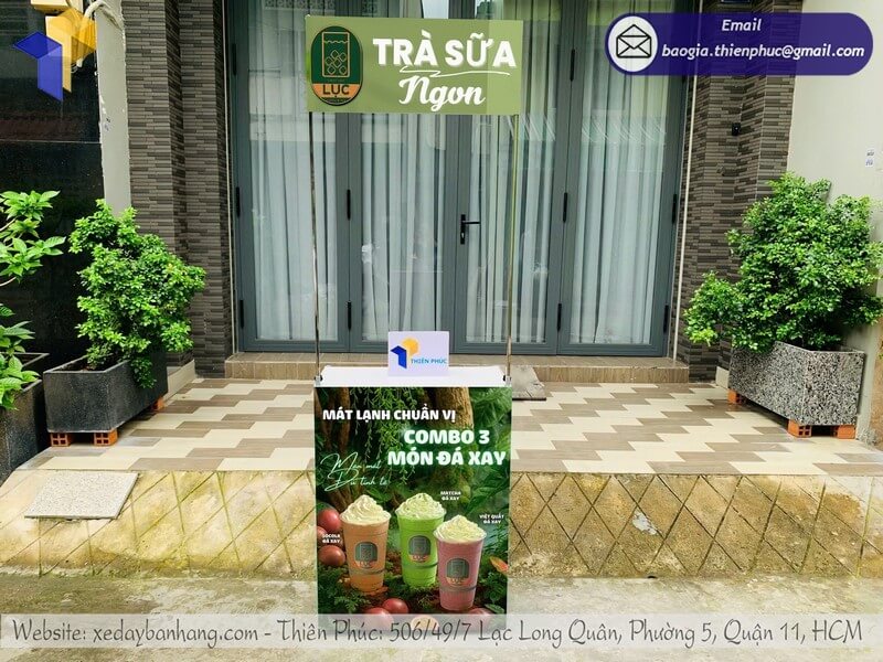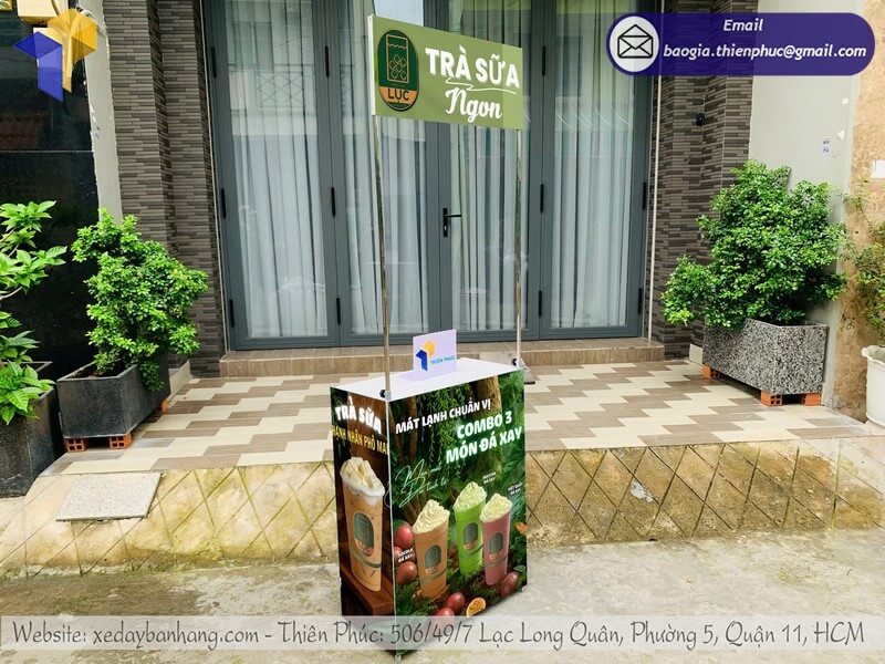 Tên sản phẩm: Xưởng sản xuất mẫu booth sắt in logo giá rẻ với nhãn TRÀ SỮA NGON