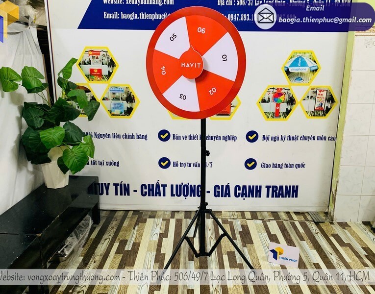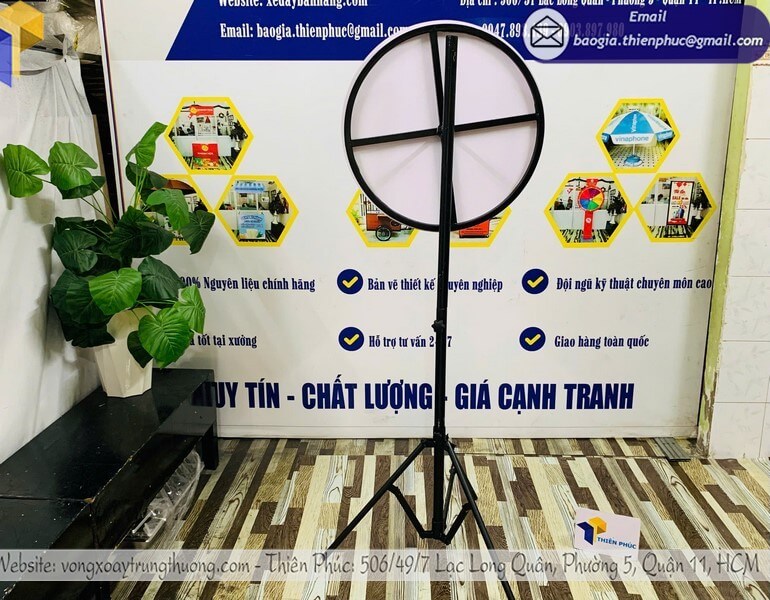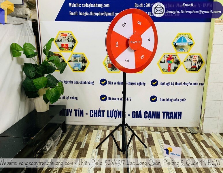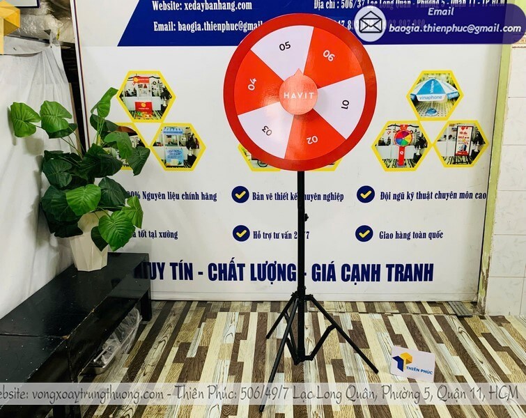 Xưởng sản xuất vòng xoay trúng quà quảng cáo cỡ lớn giá rẻ - Thiên Phúc chuyên gia công và cung cấp nhiều mẫu vòng xoay trúng quà cỡ lớn với giá rẻ nhất chỉ dao động từ 850.000đ/cái trở lên đối với mẫu vòng xoay chân xếp, cam kết giao hàng nhanh chóng, chất lượng, thiết kế logo hoàn toàn miễn phí, in theo yêu cầu.